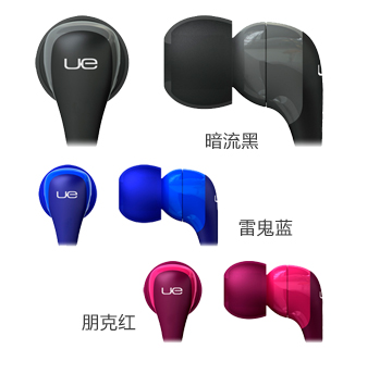 佩戴与外观 UE™ 90vm 耳机 + 麦克风有爵士灰、摇滚红、布鲁斯蓝和拉丁粉四款时尚颜色可选。您可挑选喜欢的颜色或全部收藏。此外耳机配备有五种不同尺寸的锥形硅胶耳塞,无论耳朵大小,总有一款适合您。