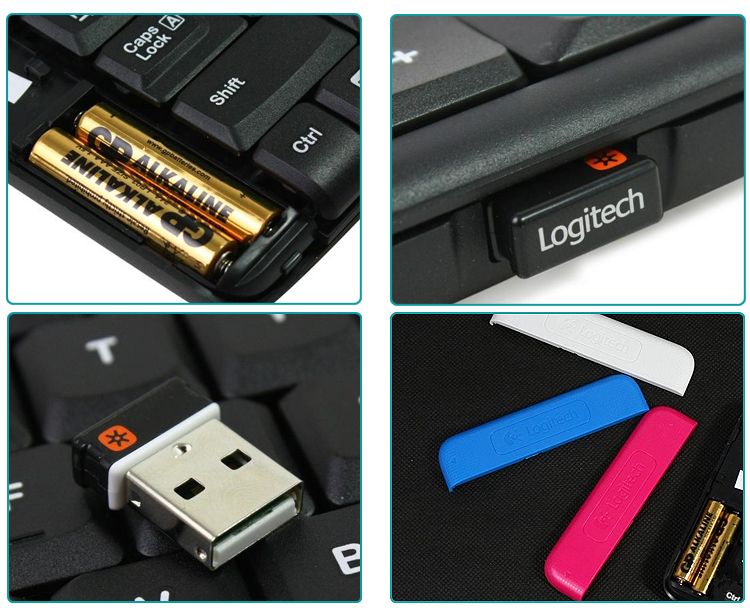 在罗技K230无线键盘左侧设计了电池仓,有趣的是键盘电池仓盖可以更换不同颜色,罗技提供了白色、蓝色和粉色三种不同颜色的电池仓盖供用户选择。十分人性化的是在键盘的右侧设计了Nano接收器的收纳槽,同时罗技K230无线键盘支持罗技的优联技术。